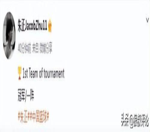 国青混血小将朱正表现出色,拿下18分6板2助攻率队完成夺冠,入选最佳阵容一阵。